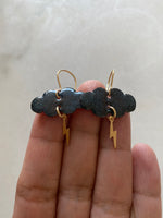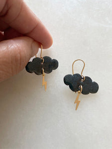 Moln i svart emalj med blixt i 14k gold filled eller Sterling silver.